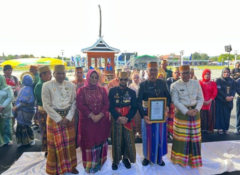 Suasana haru dan khidmat menyelimuti Panggung Budaya Padan Liu’ Burung saat Bupati Wempi W. Mawa secara resmi menerima gelar adat “To Risenge Daeng Mapuji”.